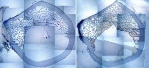 Wenn ein Knochen stärker belastet wird, passt er sich mit der Zeit an und verändert sich, um die erhöhte Kraft zu bewältigen. Umgekehrt gilt auch, dass sich der Knochen bei abnehmender Belastung schwächer und weniger dicht umbaut, da es nicht genügend Reize gibt, um stark zu sein: Das linke Bild zeigt Knochen mit geringerer Dichte, das rechte Bild zeigt umgebauten Knochen nach einer Behandlung mit LiV.